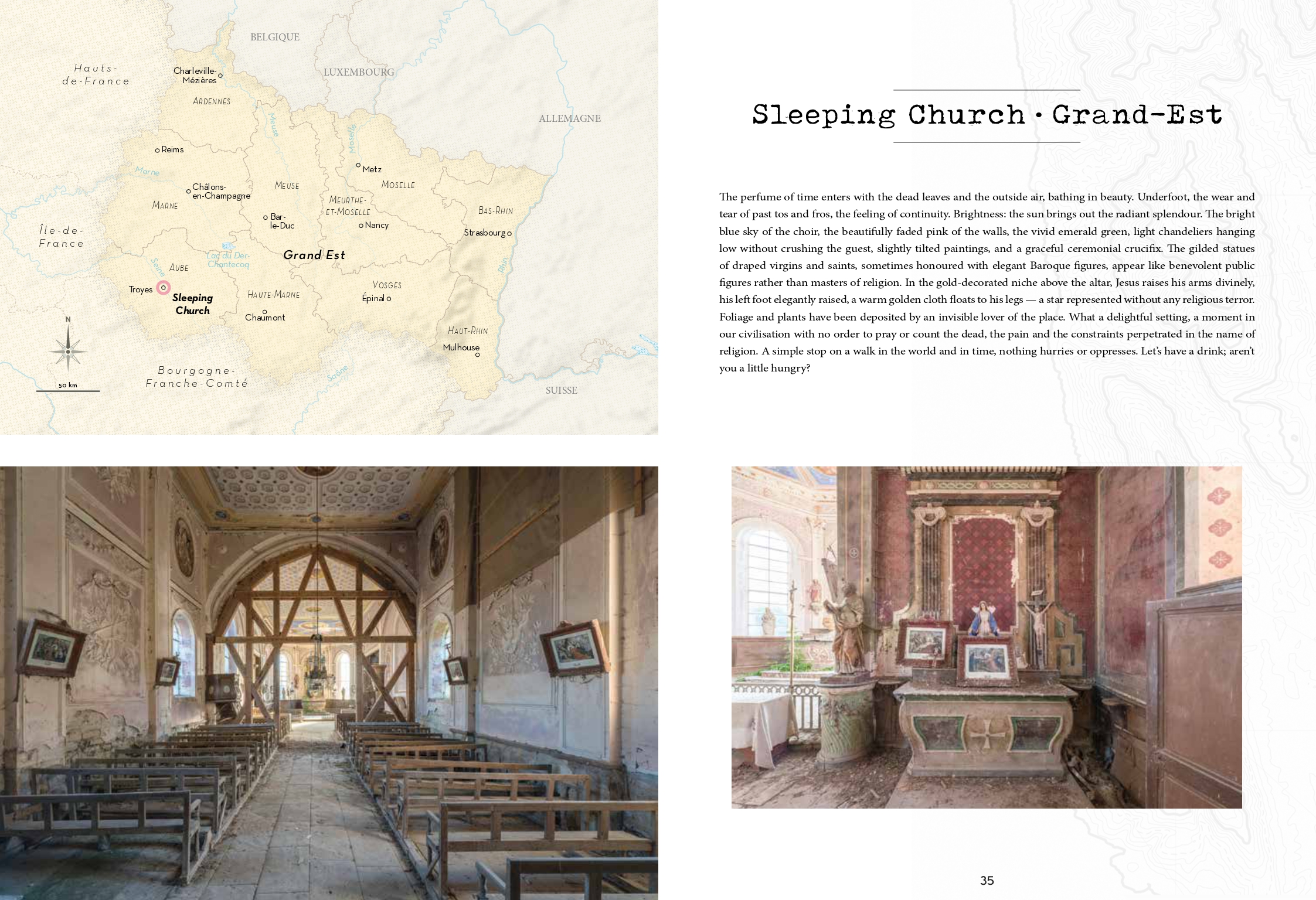 From empty manor houses to crumbling churches and disused factories across France, it reveals many of sleeping treasures, relics from a bygone era, all with a history and a story to tell.