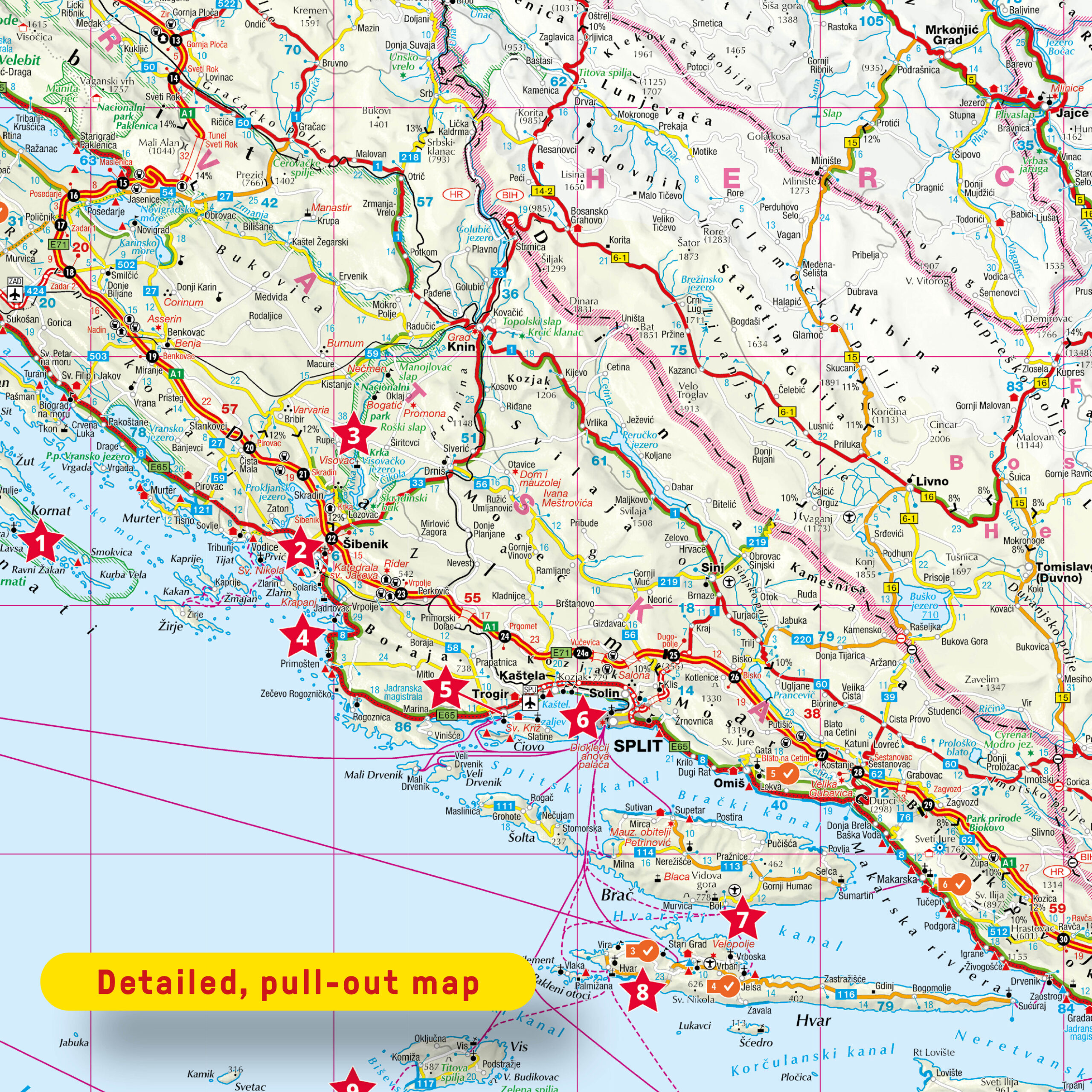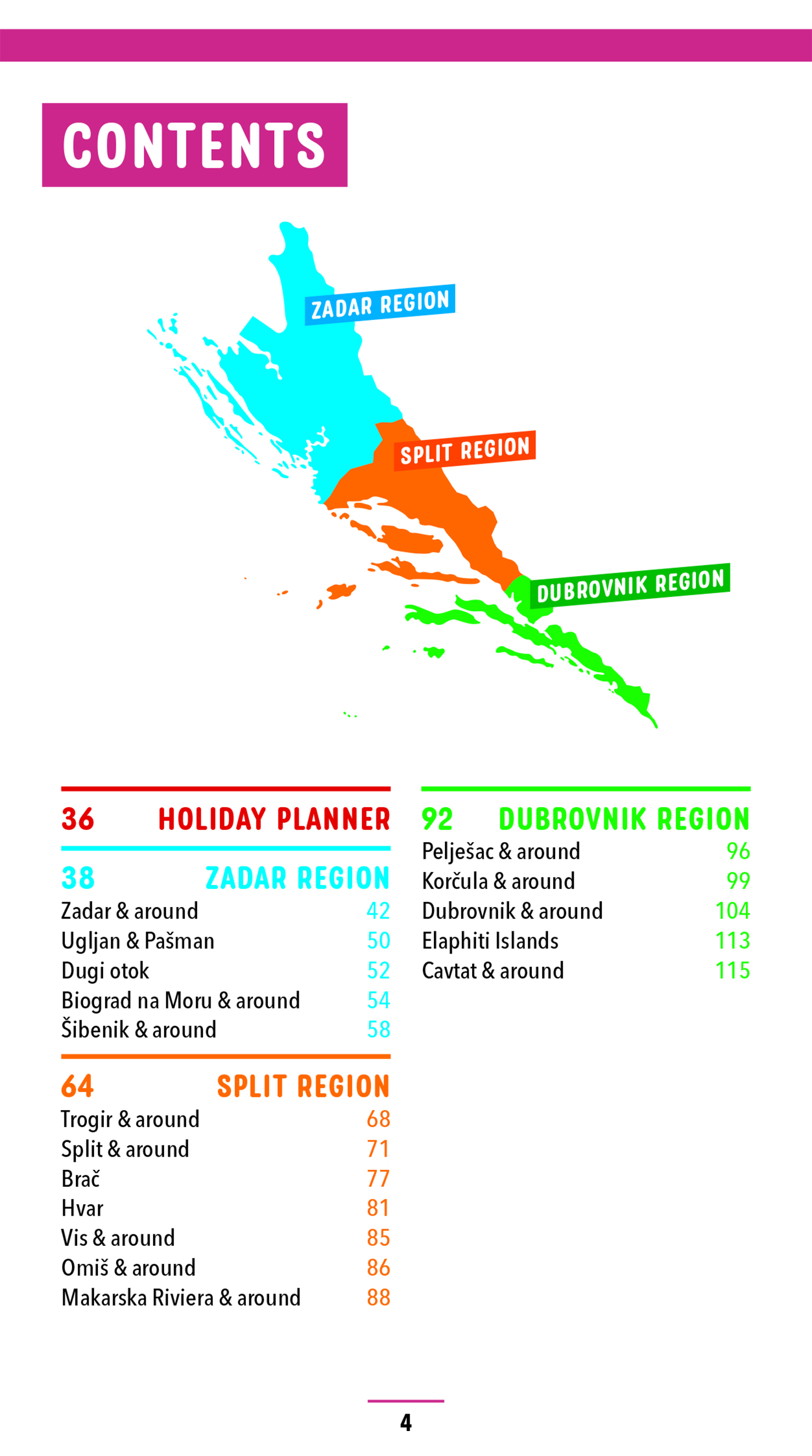 The Marco Polo Croatia Coast guide covers: Zadar, Ugljan, Pasman, Dugi otok, Biograd na Moru, Trogir, Split, Brac, Hvar, Vis, Omis, Makarska Riviera, Peljesac, Korcula, Dubrovnik, Elaphiti Islands, Cavtat