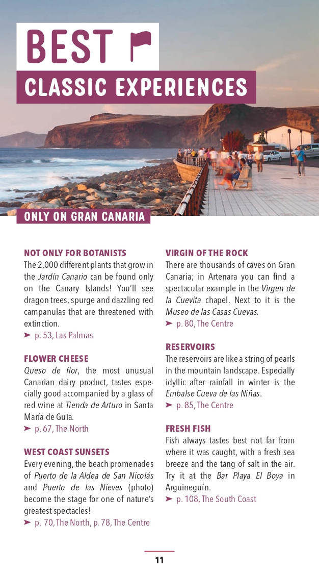 Trust Marco Polo Pocket Guide Gran Canaria to show you this amazing Italian island. The comprehensive coverage and unique insights will ensure you experience everything that Gran Canaria has to offer and more. The special tips, personal insights and unusual experiences will help you make the most of your trip - just arrive and enjoy.