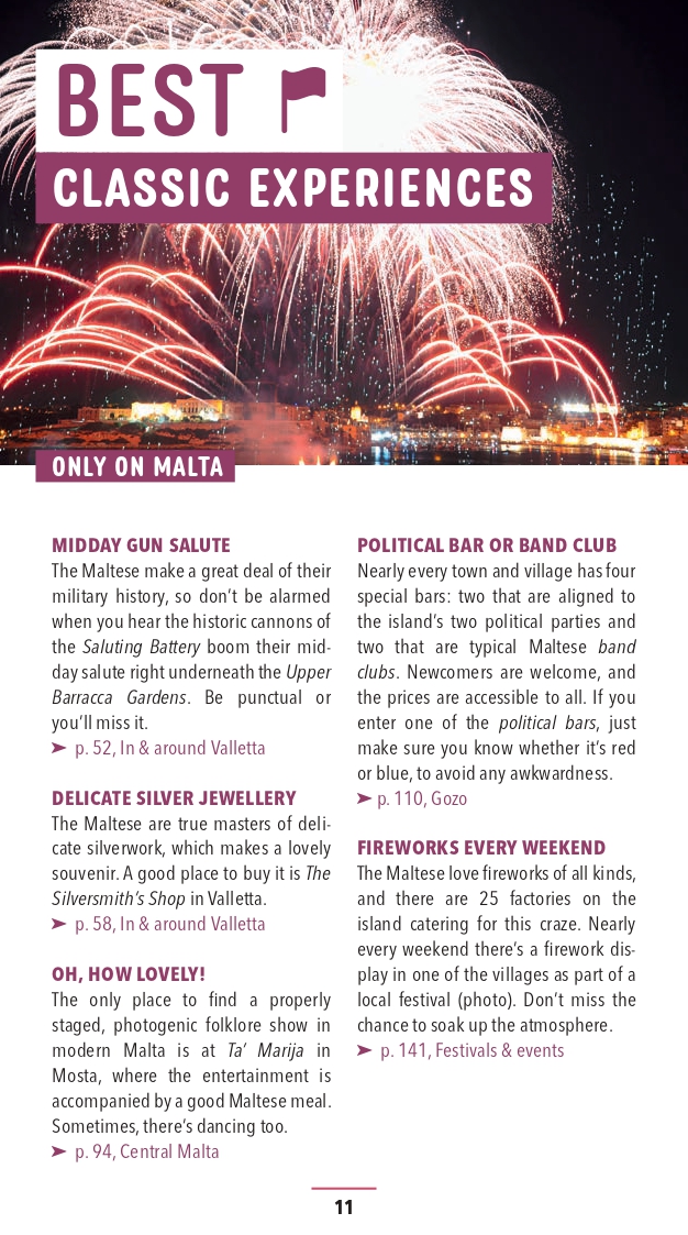 Malta is tiny yet has a bit of everything - cliffs, beaches, lively towns and quiet villages, plenty of art and 5,000 years of history. A holiday here is a city, beach and activity break all rolled into one - and it's available all year round. This practical, pocket-sized guide will help you discover the best of Malta and Gozo.