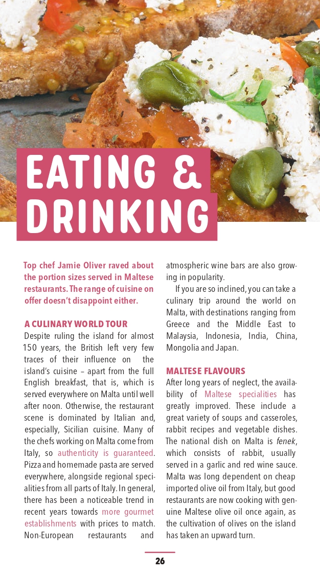 - Malta in full-colour – Marco Polo Pocket Guide Malta includes full-colour photos throughout the guide bringing the island to life offering you a real taste of what you can see and enjoy on your trip