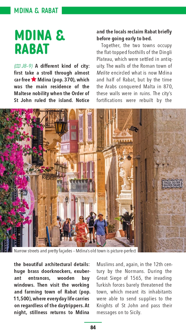 The Marco Polo Malta Pocket Guide covers: Valletta, Vittoriosa, Marsaxlokk, Mdina, Rabat, Mellieha, St Paul's Bay, Gozo