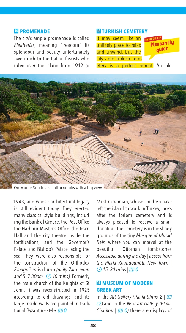 Trust Marco Polo Pocket Guide Rhodes to show you this amazing Greek island. The comprehensive coverage and unique insights will ensure you experience everything that Rhodes has to offer and more. The special tips, personal insights and unusual experiences will help you make the most of your trip - just arrive and enjoy.