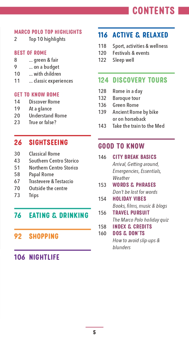 - Rome in full-colour – Marco Polo Pocket Guide Rome includes full-colour photos throughout the guide bringing the island to life offering you a real taste of what you can see and enjoy on your trip