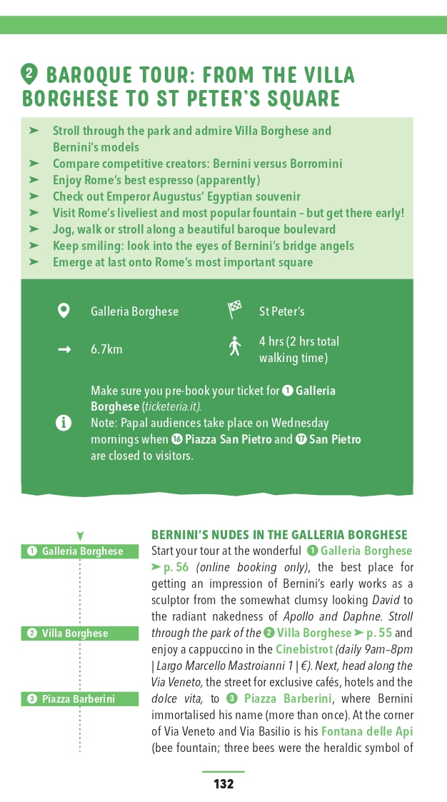The Marco Polo Rome guide covers: Villa Borghese, Roman Forum and Palatine, Piazza Navona, Colosseum, Domus Aurea, St Peter's, Basilica of San Clemente, Vatican Museums, Capitoline Museums, Trevi Fountain, Campo de' Fiori, Galleria Borghese, The Pantheon