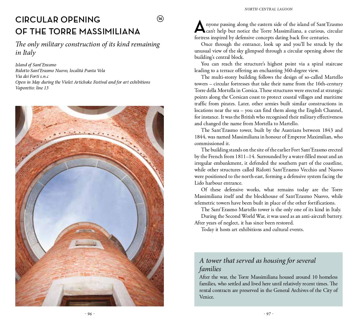 Far from the crowds and the usual cliches, Venice Lagoon offers countless off-beat experiences and is home to any number of well-hidden treasures that are revealed only to residents and travellers who find their way off the beaten track. An indispensable guide for those who thought they knew Venice Lagoon well or would like to discover the other face of this fascinating region.