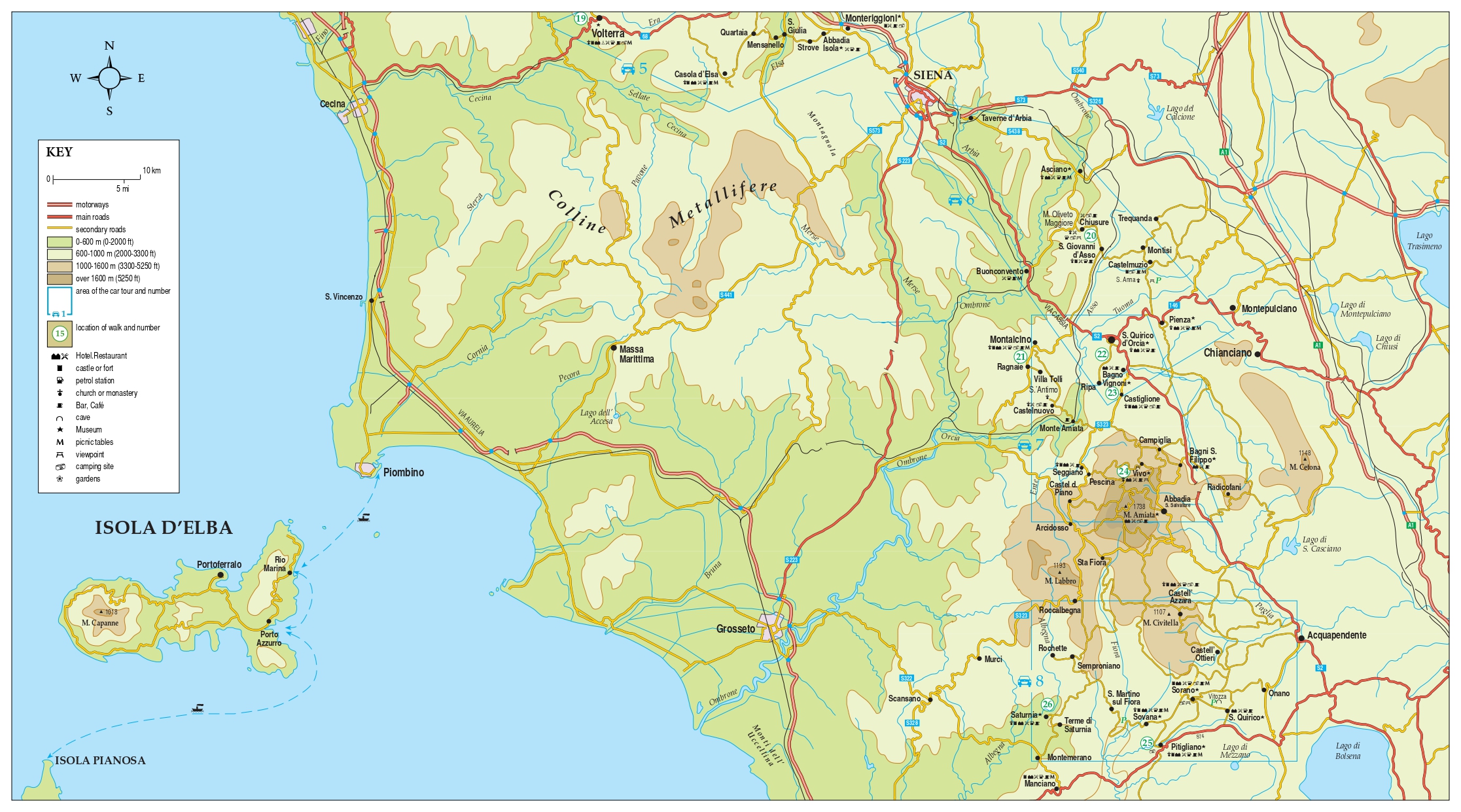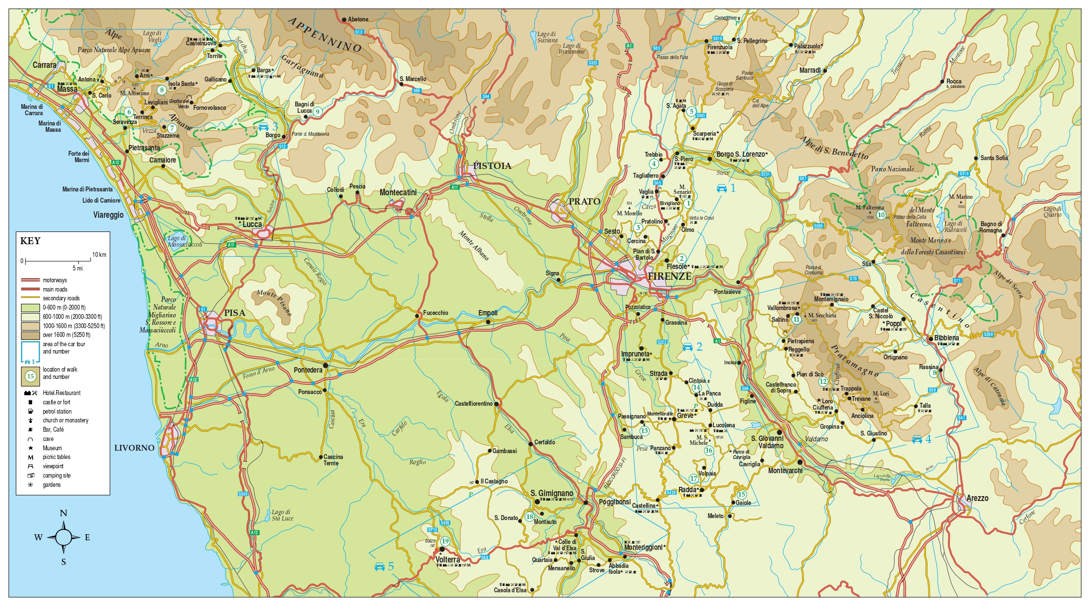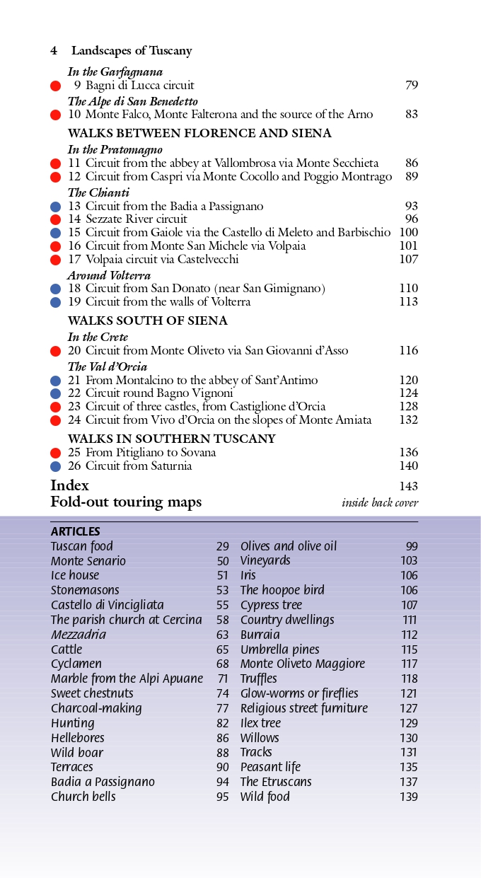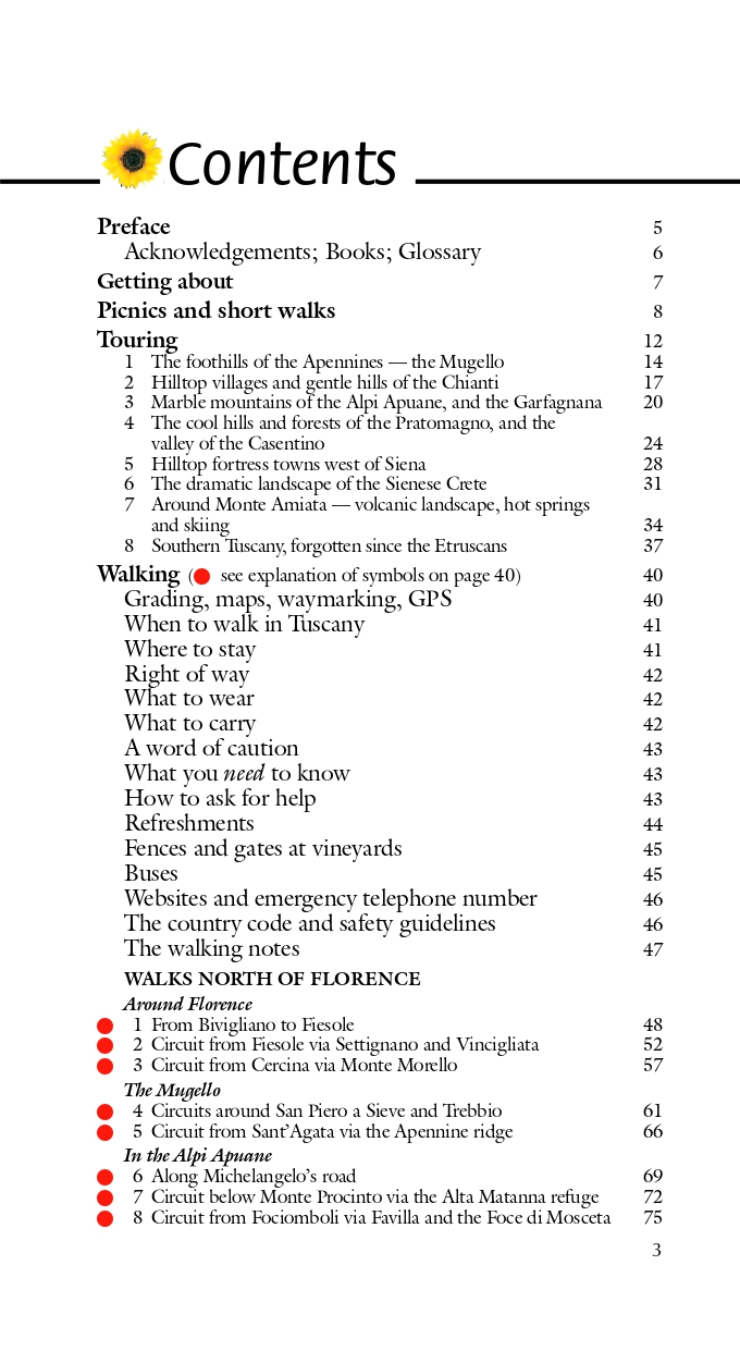 The Sunflower Tuscany guide is indispensable for hiking in Tuscany or seeing the region by car. We cover routes from the Carrera marble quarries in the northwest down to southern Tuscany, with a particular emphasis on the area round Florence and in the Chianti, showing trekking routes of varying difficulty, all of which are mapped in detail.