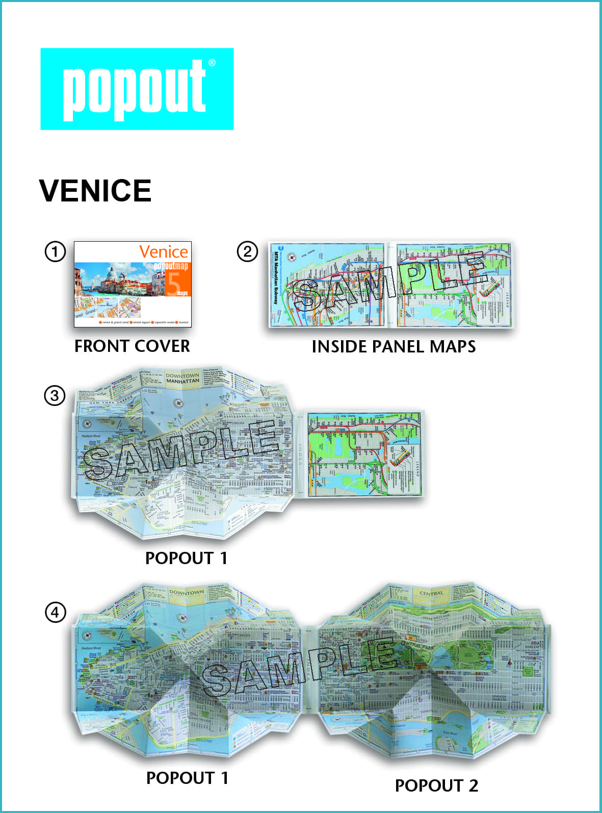 - Two pop-up maps - a detailed street map of the city centre and an overview map of Venice