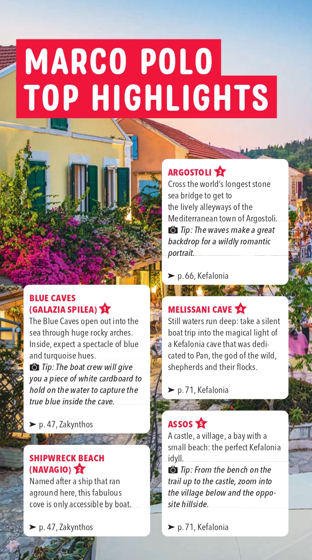 - Zakynthos and Kefalonia in full-colour – Marco Polo Pocket Guide Zakynthos includes full-colour photos throughout the guide bringing the island to life offering you a real taste of what you can see and enjoy on your trip